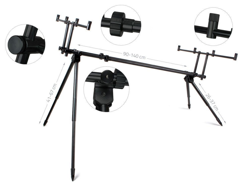 Matt fekete színű, elegáns megjelenésű, exkluziv kivitel jellemzi az Alcatraz bottartó állványokat. Tiszta fém minden alkatrész, amely garantálja a hosszú élettartamot. A többféle szögben állítható lábak garantálják, hogy bármely terepen biztonsággal fel tudjuk állítani. A masszív csatlakozási pontok rendkívüli stabilitást adnak, még extrém körülmények között is. A négybotos kereszttartónak köszönhetően botjainkat tetszés szerinti távolságban helyezhetjük el egymástól. Az önzáró teleszkópos lábak fokozatmentes láb beállítást tesznek lehetővé, illetve az állítható magasságú kereszttartókkal tudjuk a rod pod súlypontját lejjebb vinni, ami nagyon előnyös szeles időben. A kontraanyás kereszttartókon a kapásjelzők és bottartófejek egyszerűen lefixálhatóak a helyes állásba. Párnázott hordozó táska védi a szállítási sérülésektől.