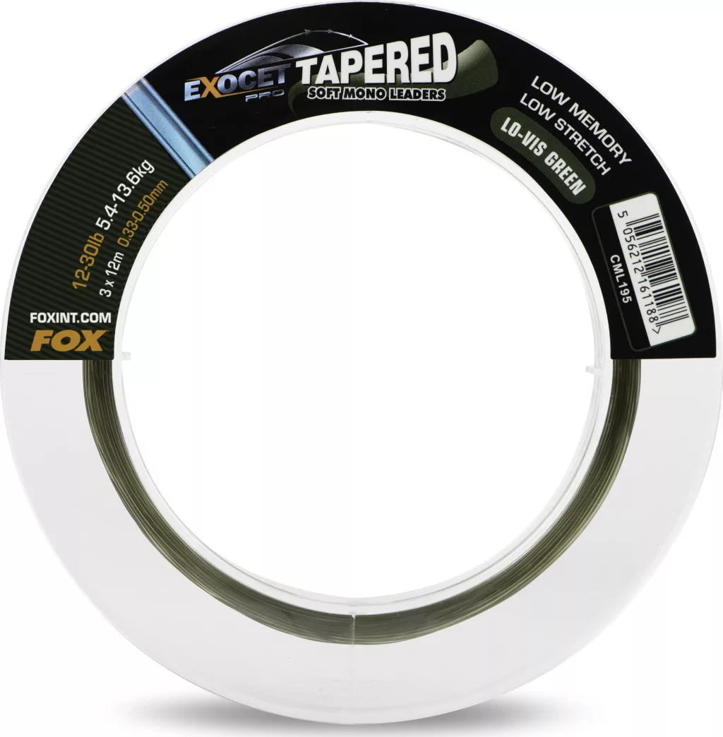 FOX Exocet Pro Low Vis green Tapered Leaders 12-30LB 0.33- 0.50mm 3pcs