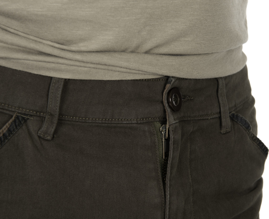 Részben gumírozott derék övhurokkal és gombos zárással
