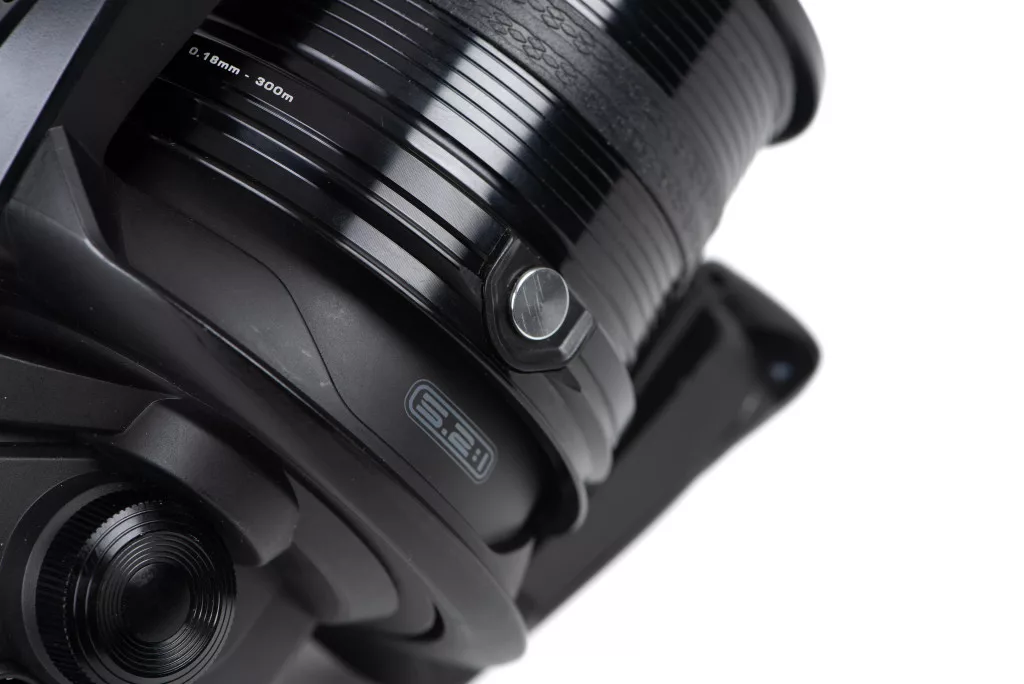 Az 5,2:1 áttételnek köszönhetően az zsinórbevontatás rendkívül gyors, egy hajtókar fordulat alatt 124cm zsinórt teker fel, így gyorsan visszanyerhetjük az üres Spombokat, maximálisan kihasználva az etetési időt és a hatékonyságot.